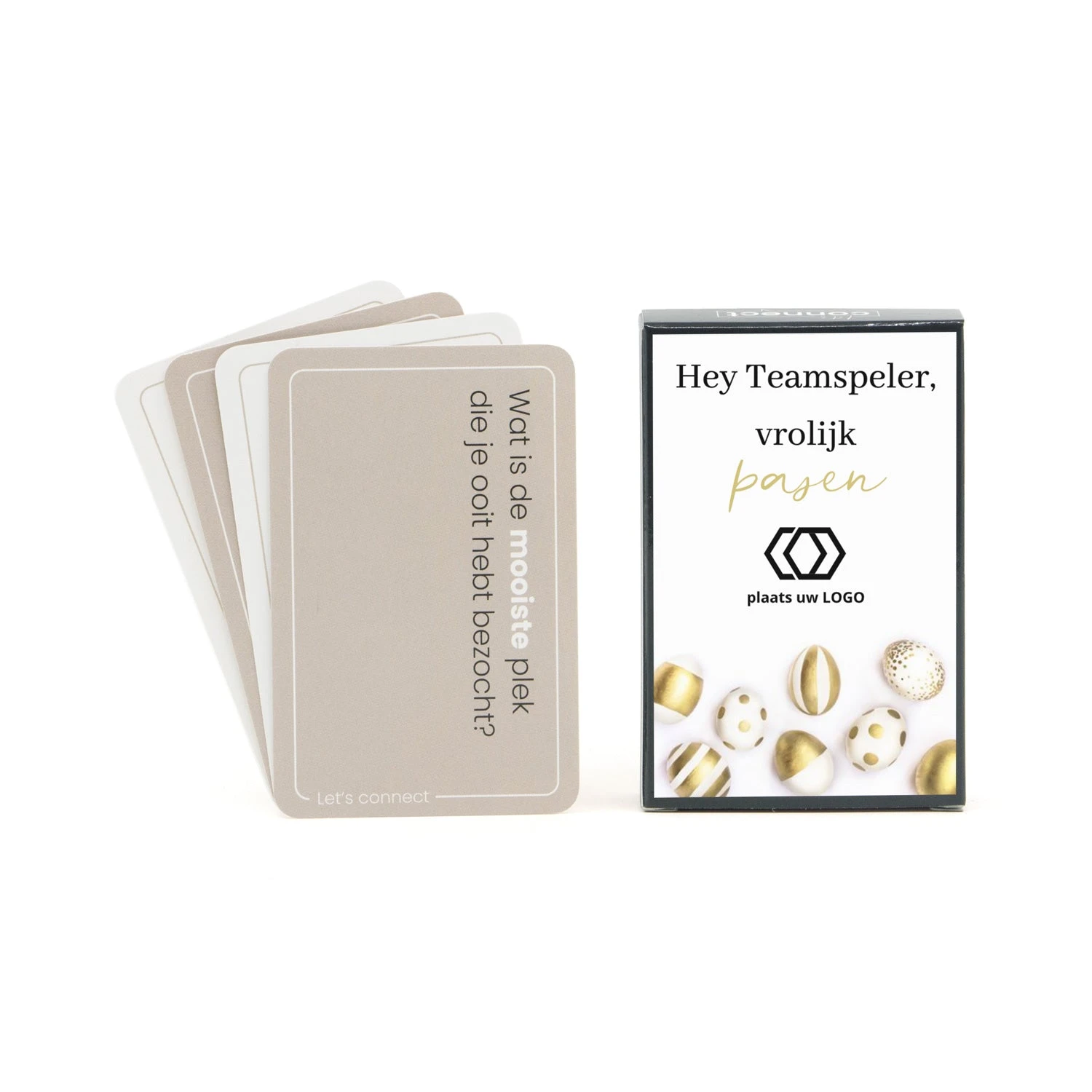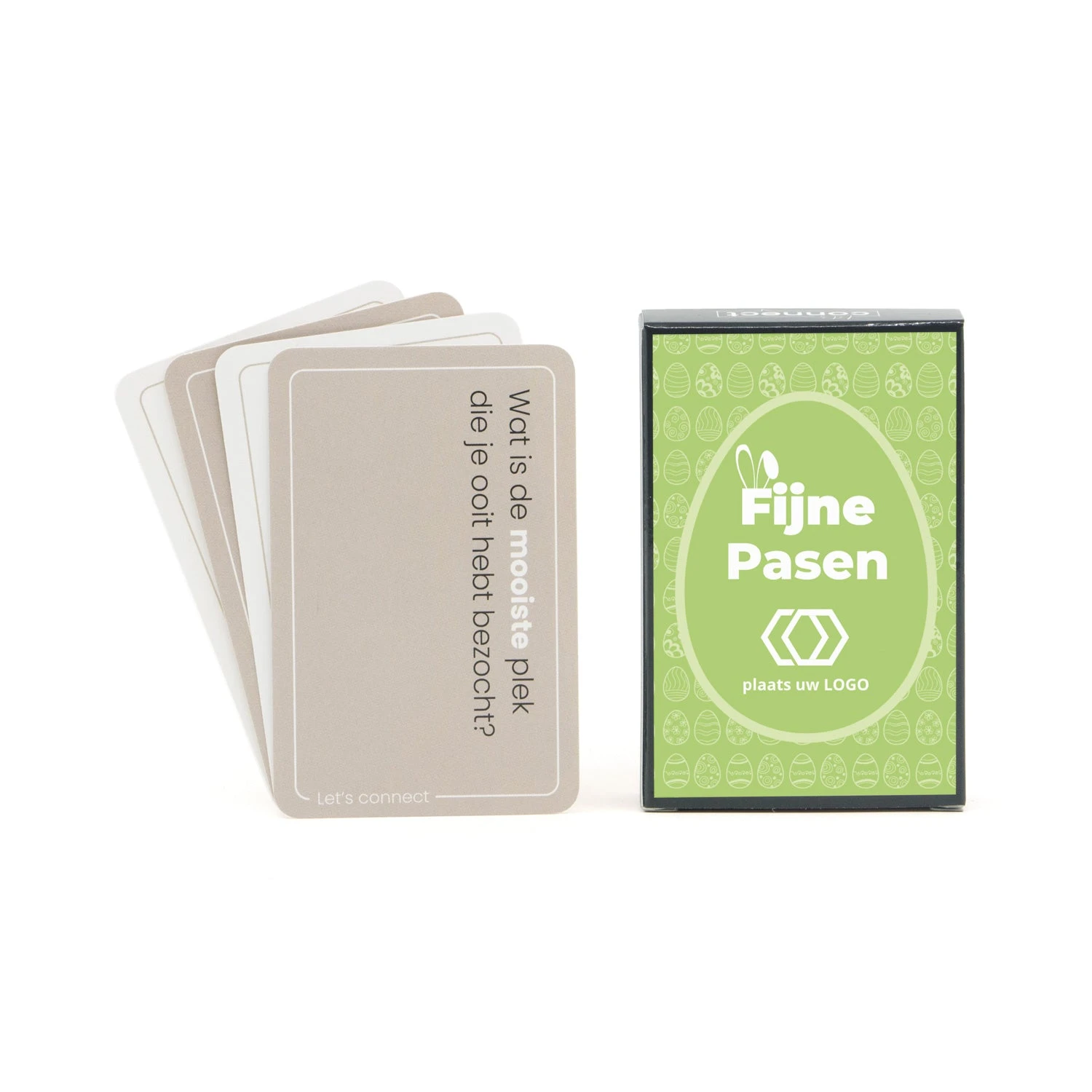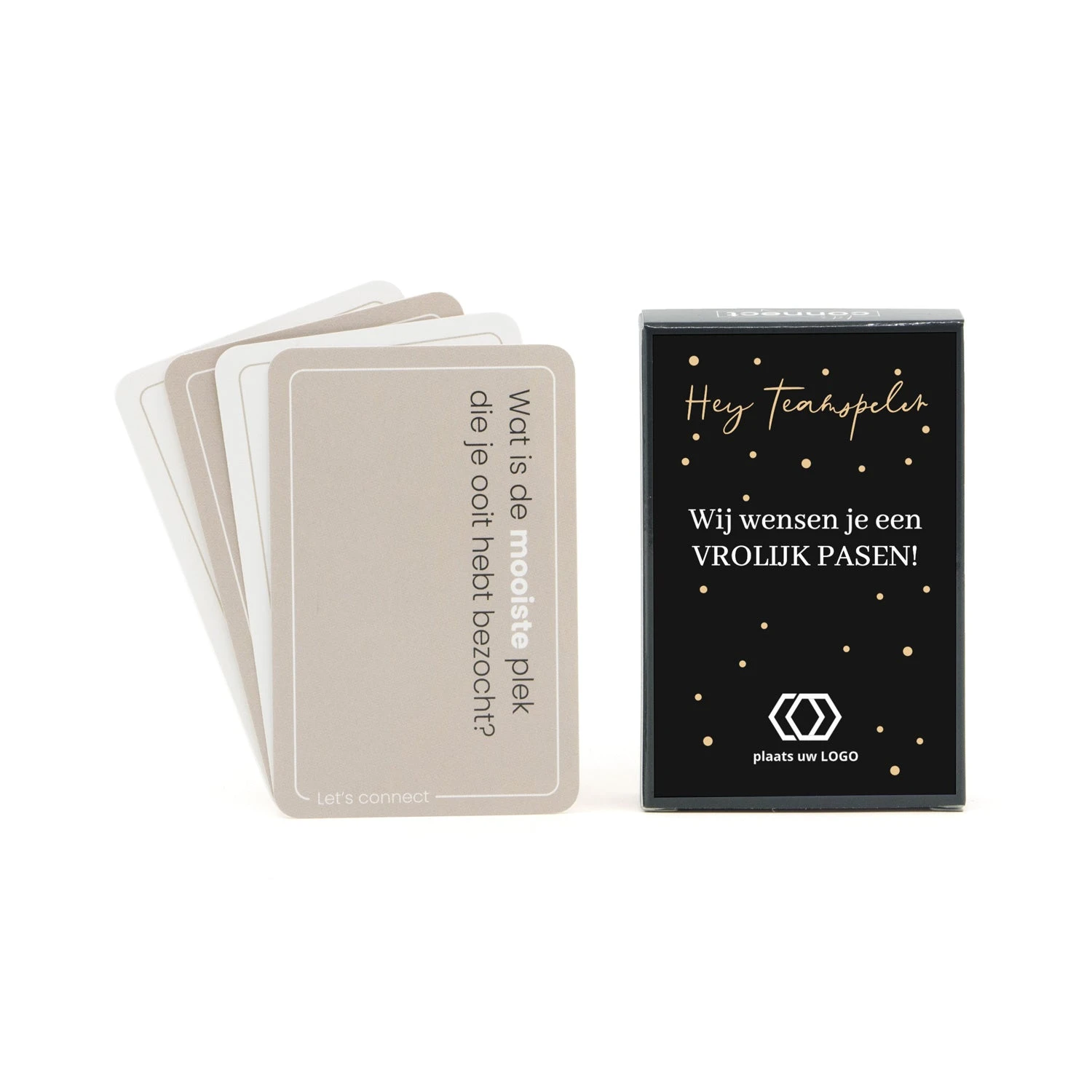Speluitleg: Schud de kaarten. Pak een kaart en lees de vraag hardop voor aan je medespeler(s). Let’s Connect!