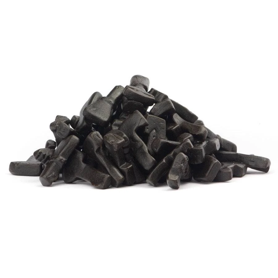 Ingrediënten: suiker, glucosestroop, TARWEzetmeel, melasse, gemodificeerd maīszetmeel, water, zoethoutwortelextract, salmiakzout, kleurstof (E153), aroma, plantaardige oliën (palmpit, kokos), glansmiddelen (bijenwas, carnaubawas).