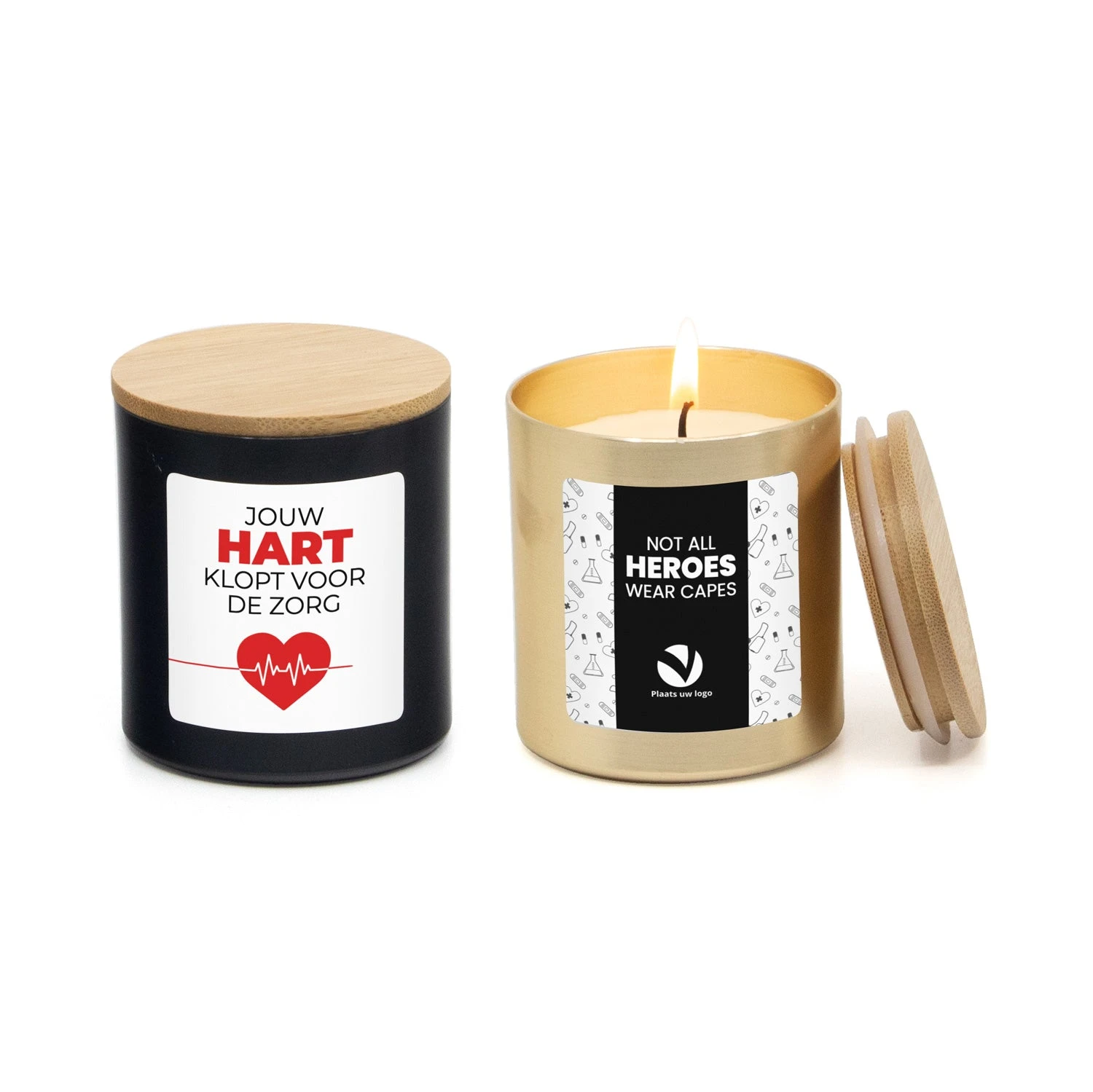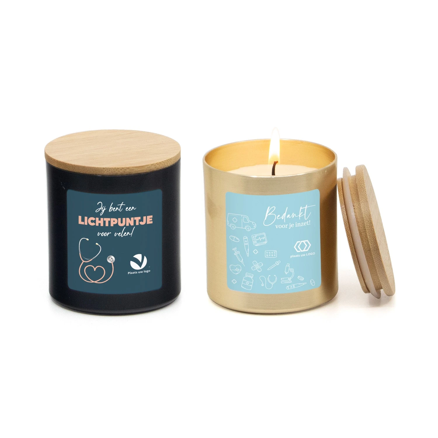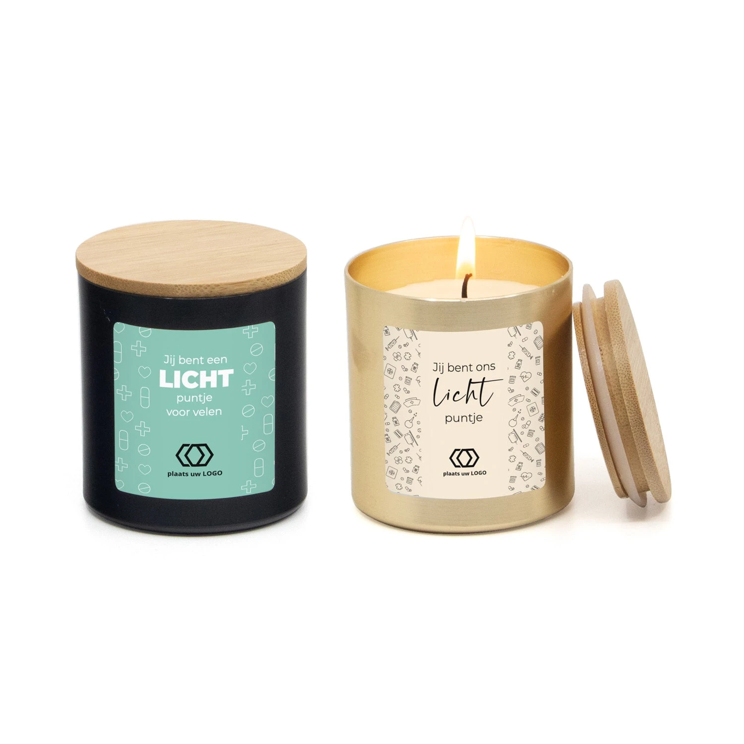 Voor ontzettend veel mensen zijn de hardwerkende zorgmedewerkers het LICHTpuntje van de dag. Verlicht daarom de dag van alle zorgmedewerkers tijdens de Dag van de Verpleging met deze sfeervolle vanille geurkaars gemaakt van natuurlijke materialen. Voeg nog een leuke tekst en/of foto toe aan het etiket en laat jouw waardering op een persoonlijke manier blijken!