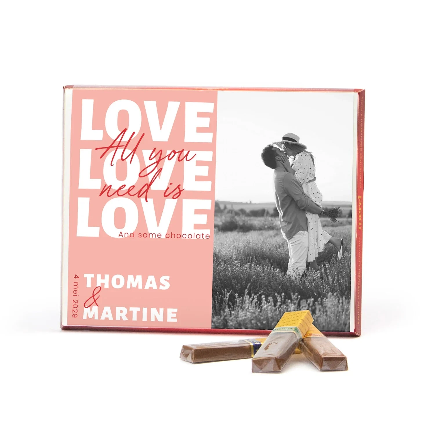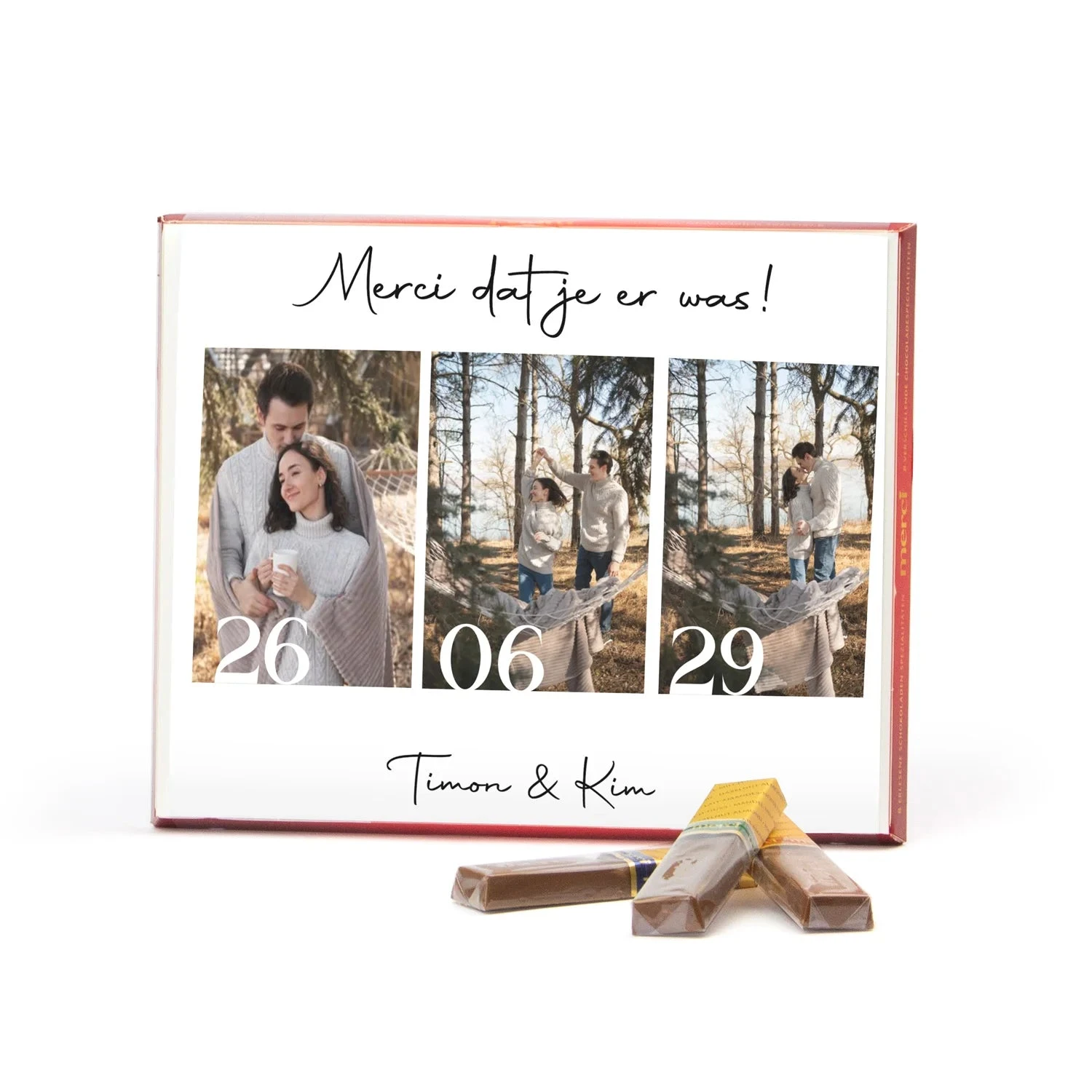Merci dat je er was. Deze doos met heerlijke Merci chocolaatjes voorzien wij van een persoonlijke inlay kaart die je zelf kunt ontwerpen.