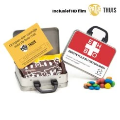 Ontspan een avondje voor de buis met Pathé thuis! Een persoonlijk bedankje na een periode van hard werken. Dit koffertje is gevuld met twee m&m zakjes, een Pathé Thuis vouchercode en een personaliseerbaar etiket. Zet er een persoonlijke boodschap en/of foto op in onze ontwerptool!