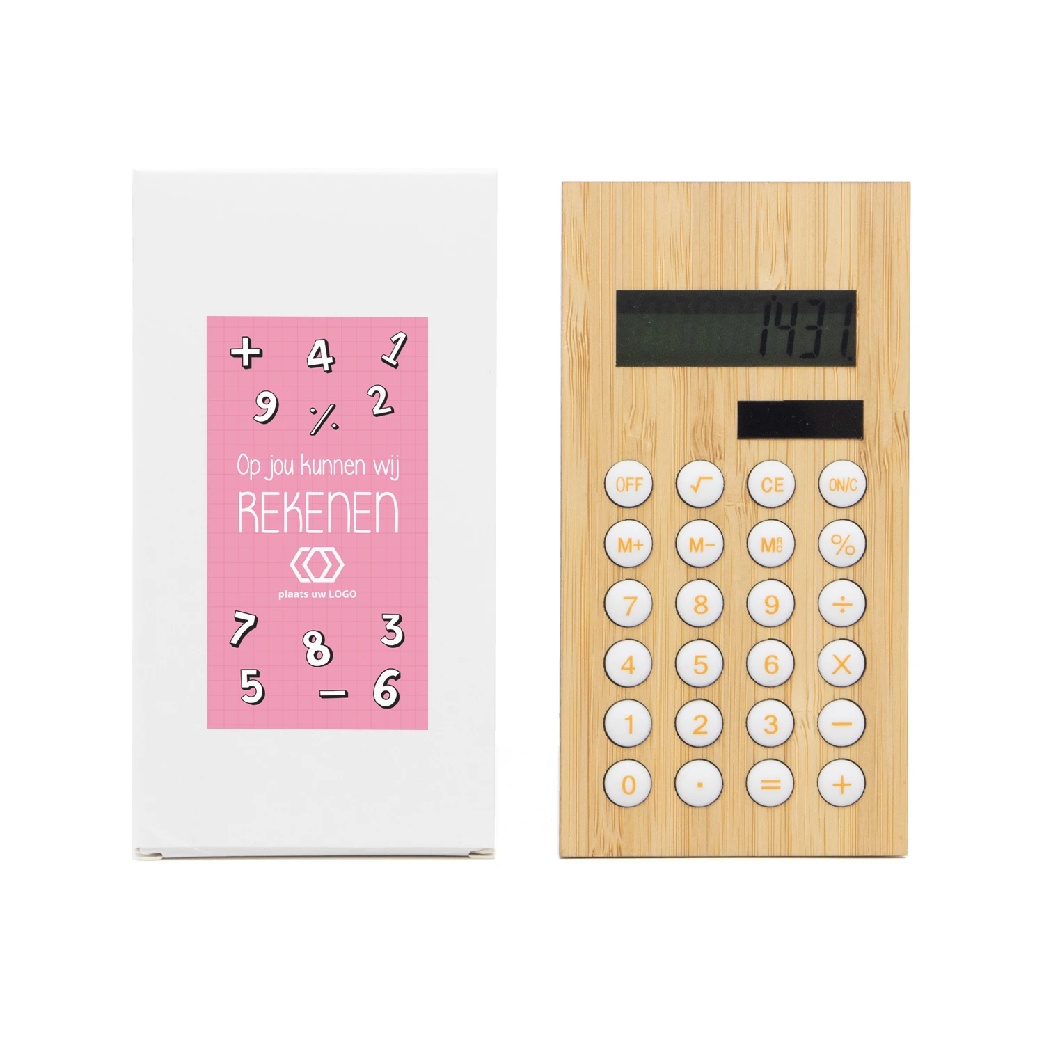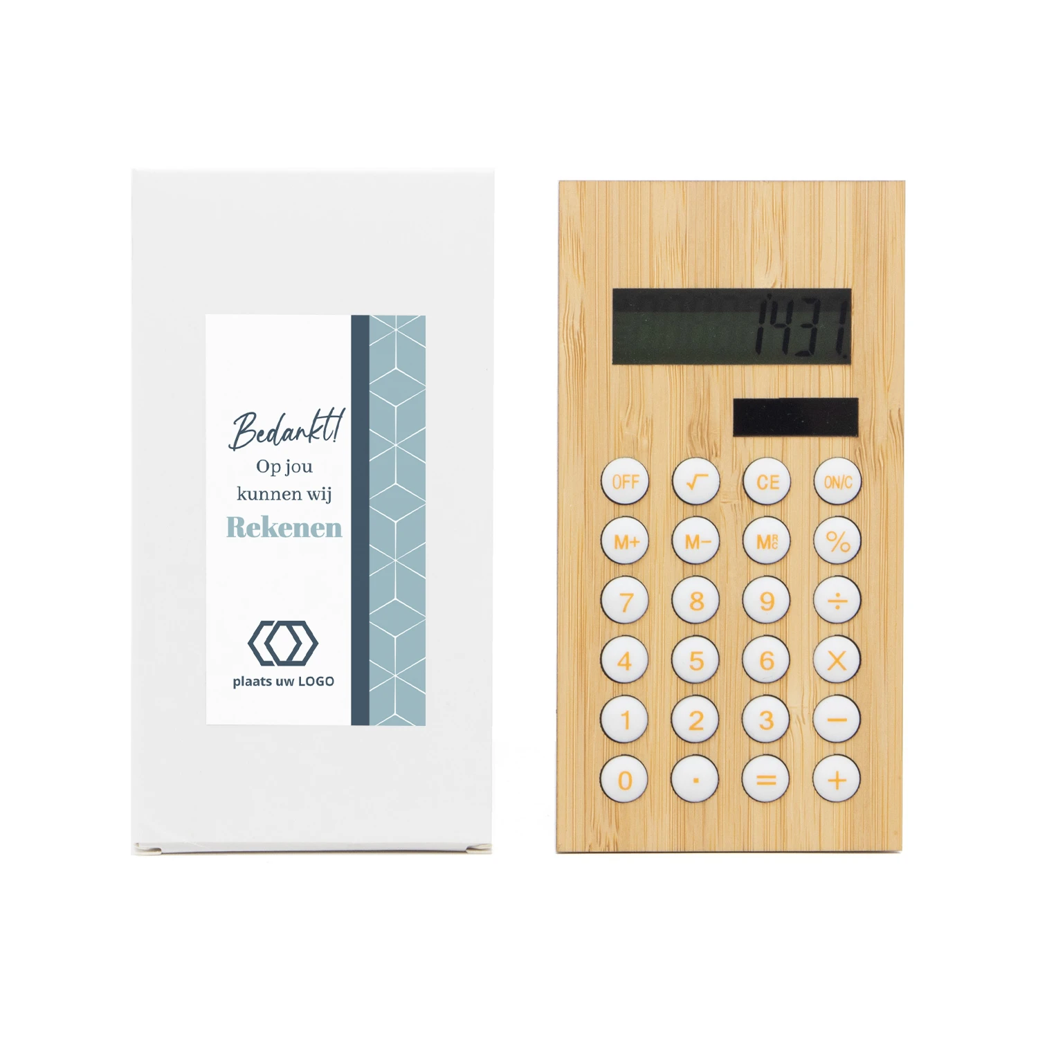 Heeft jouw personeel er weer alles aan gedaan om de inventarisatie op orde te krijgen? Of verdient die loyale klant na de zoveelste bestelling ook eens een bedankje? Reken er dan maar op dat je met deze rekenmachine op een originele manier jouw waardering kunt laten blijken. De rekenmachine is voorzien van een batterij en een klein zonnepaneeltje. Dubbele stroom en dubbel zoveel rekenplezier! Het doosje voorzien wij van een persoonlijk etiket, die je zelf kunt ontwerpen.